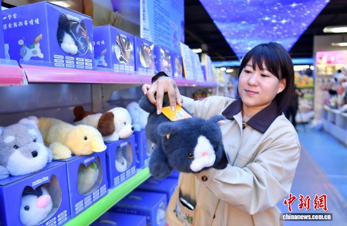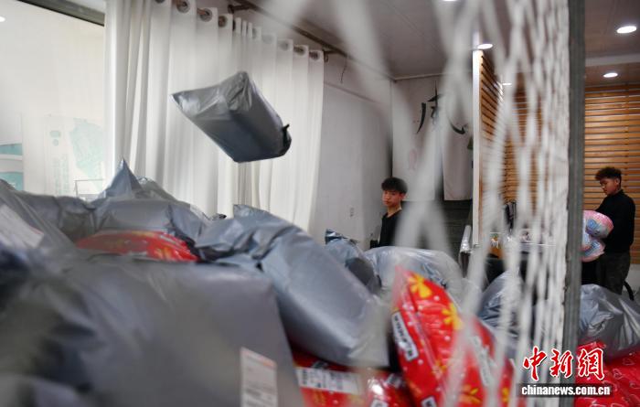 3月25日,河北雄安新区容乡县沉纺乡内乱,任务职员正正在挨包毛绒玩物。中新社记者 韩冰 摄